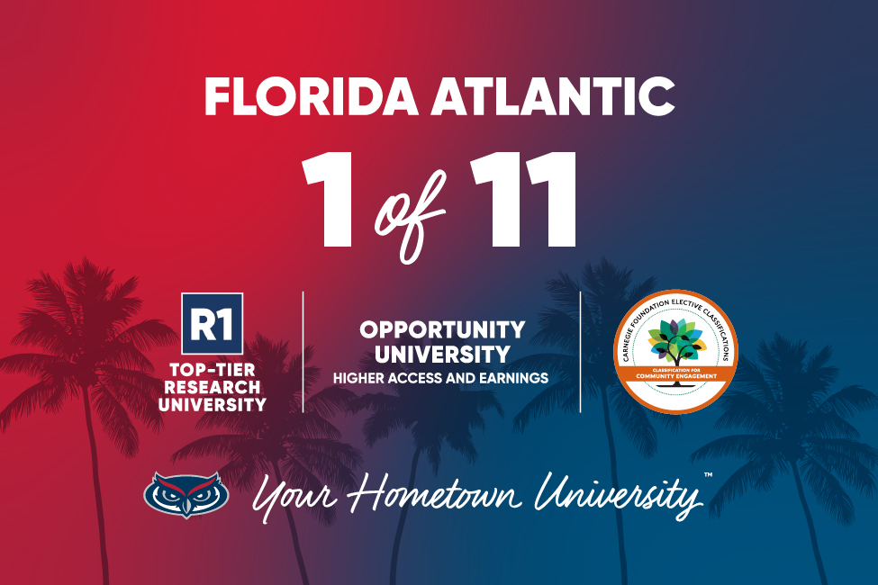 With this recognition, Florida Atlantic is now one of only 11 universities in the United States to achieve three Carnegie Foundation designations: Carnegie Community Engagement Classification, “R1: Very High Research Spending and Doctorate Production,” and “Opportunity College and University.”